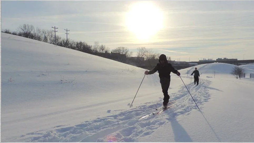 There are no groomed or tracked cross-country ski trails exclusively for skiers. The Trail west of 37th Street, the Brewers Stadium Spur by American Family Field, and the Three Bridges Park Spur are not plowed and are open to all non-motorized users, including skiers, hikers, and snowshoers.
